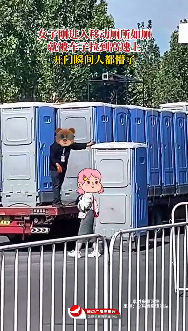 近来,河北,一名女子在移动厕所内如厕时,万万没想到自己竟随厕所一同被车子载到了高速公路上,这一戏剧性场景让很多网友直呼“人在厕所蹲,车却高速奔”。